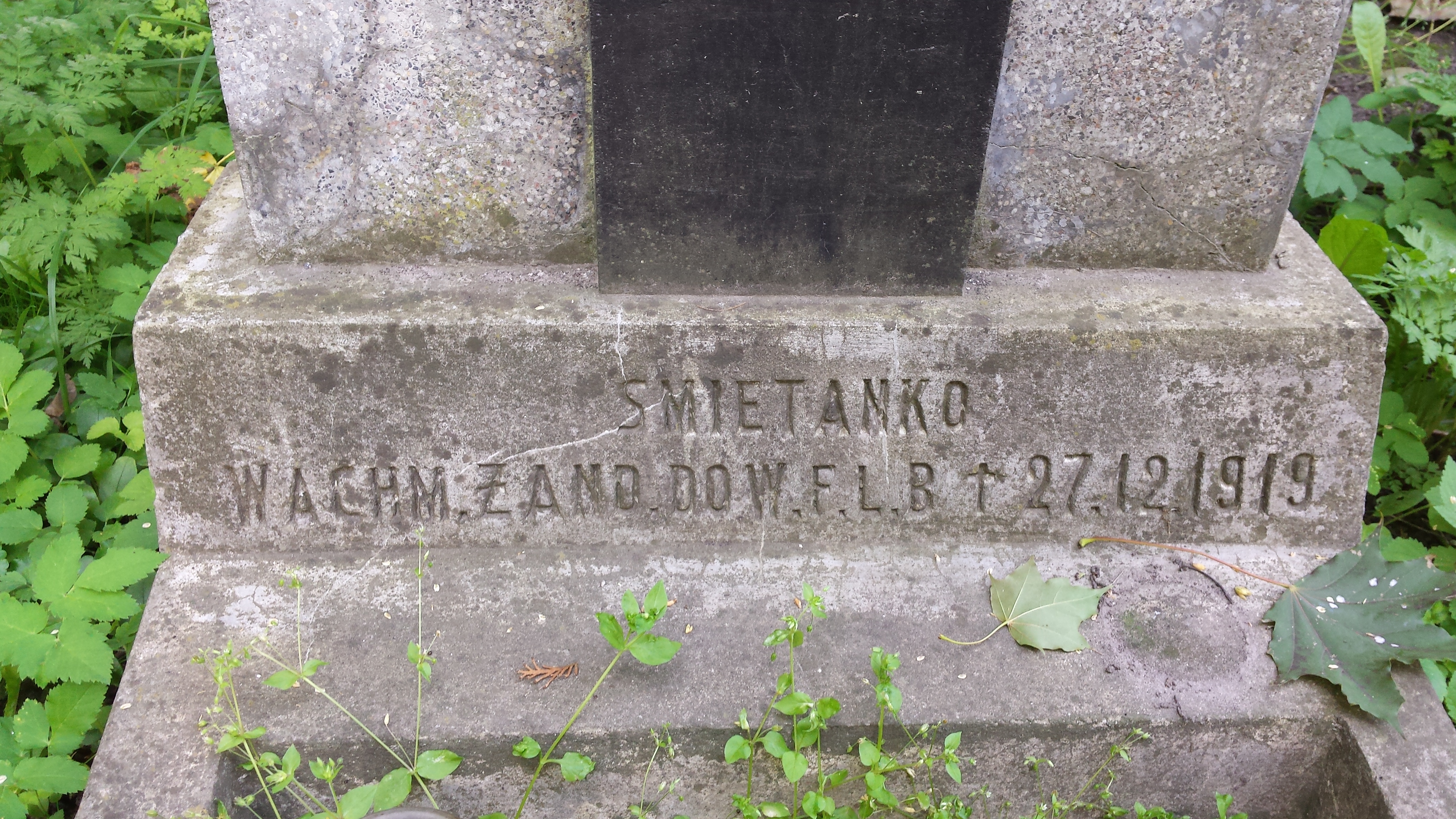 Grób żołnierza Samoobrony Wileńskiej Śmietanko operator 23 marca 2018 Brak komentarzy Legioniści 1914-1916 i Wojsko Polskie 1918-1920 Wilno (okręg wileński) grób Wilno, Zarzecze / Vilnius, Užupis Cmentarz BernardyńskiŚmietanko (imię nieznane), wachmistrz żandarmerii, żołnierz Samoobrony Wileńskiej, zginął 27 grudnia 1919 r. w walce o Wilno. InskrypcjaSmietanko / wachm. żand. DO W.F.L.B., zg. 27.XII.1919