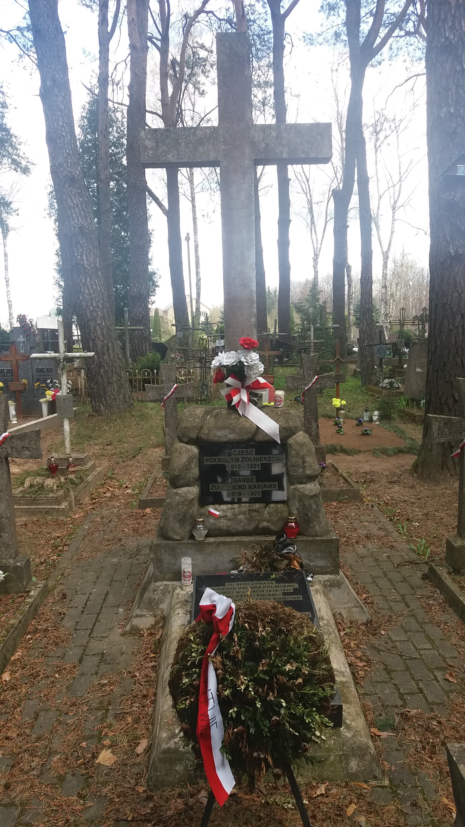 Po prawej stronie głównej alei 20 grobów w trzech rzędach. Po lewej stronie w głębi cmentarza 29 grobów w dwóch rzędach. Nagrobki w formie krzyża maltańskiego na niewielkiej podstawie, wys. 160 cm. Inskrypcje na przecięciu ramion. Krzyże są umieszczone na betonowych obramowaniach pól grobowych. Ścianki wys. 20 cm, grubość 5 cm, pochylone do środka. Po renowacji: w centrum betonowy krzyż i tablice z polerowanego granitu z pamiątkowym napisem w j. polskim i litewskim. Po obu stronach krzyża znajdują się odnowione nagrobki.